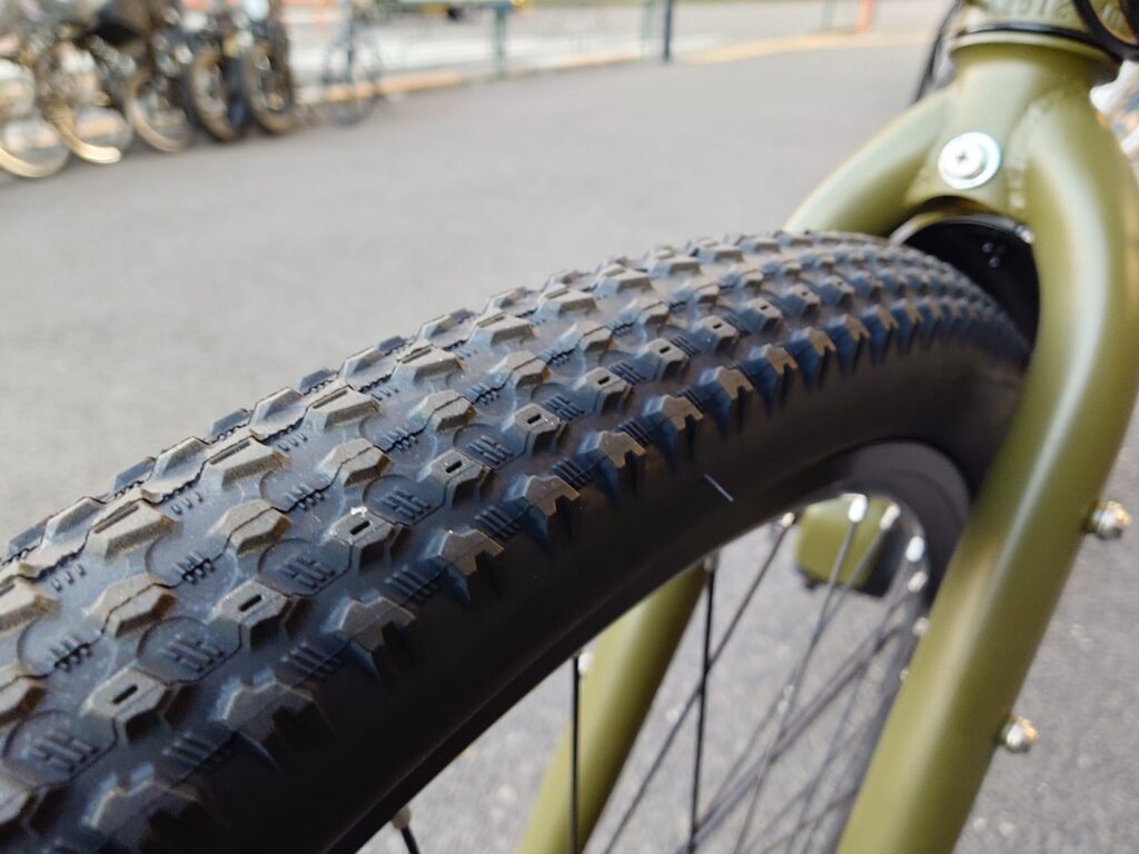 - 安定したブロックタイヤ を装着